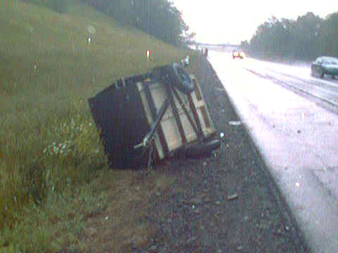 Here lies the club trailer,NY Thruway, 30 miles from run and 435 miles from home. New rule: No more lil trailers that are invisible behind big van!!